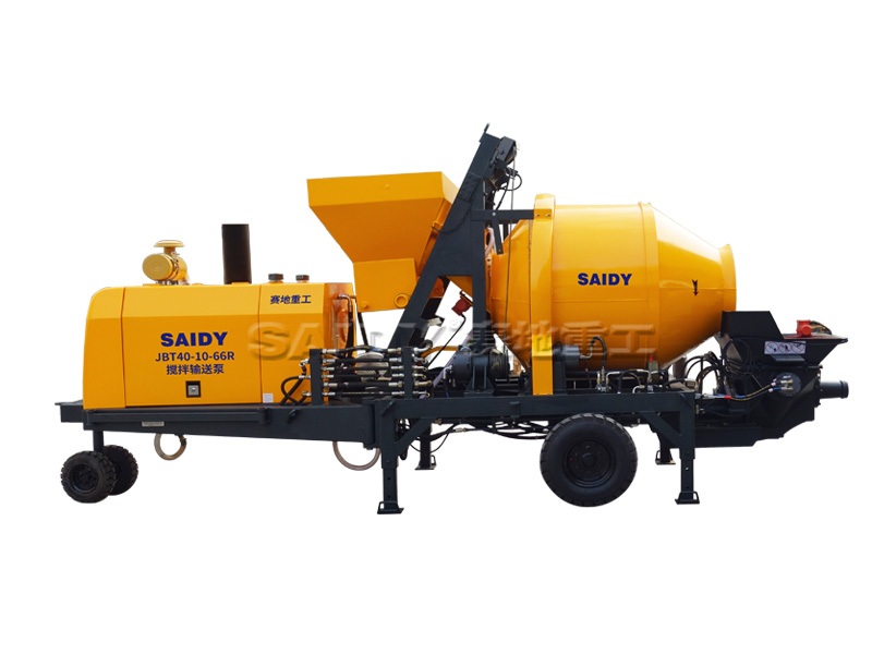 攪拌泵送一體機集攪拌機和泵送機為一(yī)體,又(yòu)稱攪(jiǎo)拌拖泵、攪拌輸送一(yī)體(tǐ)泵、攪拌泵一體機、攪拌輸送(sòng)兩用機、混凝土攪拌機(jī)帶泵車一體機等。賽(sài)地JBT係列攪拌泵送(sòng)一體機選用JZC滾筒式攪拌機作為攪(jiǎo)拌主體部分,結合HBT係列(liè)混凝土泵,集(jí)上(shàng)料混合攪拌高壓泵送為一體。可用柴油機或電動機作為動力係(xì)統,其(qí)中柴油機動力攪拌泵送(sòng)一體機采用(yòng)可旋轉式設計。施工操作係統全部自動化,攪拌泵送上料加水等實現了一鍵操作,能在施工(gōng)現場便捷移動(dòng),可卸料混凝土罐車(chē),或(huò)到自卸卡車適應更多環境。